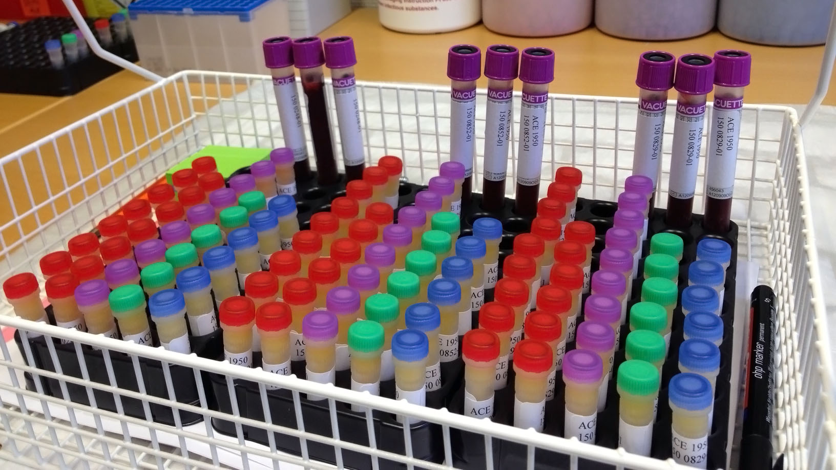 Det ble tatt blodprøver, hvorav noen var vanlige rutineprøver som ble analysert ved sykehusets laboratorium kort etter tapping. Resten av blodprøvematerialet ble behandlet og frosset ned i biobank.